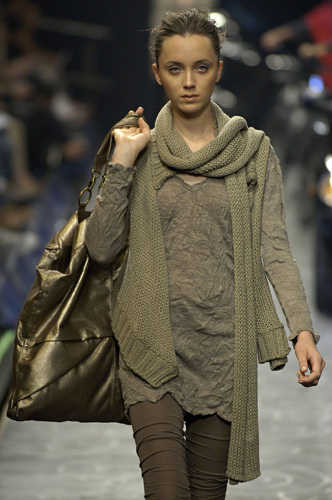 Mara Mac, nos trajo una colección de inspiración futurista, donde una de las prendas básicas han sido los leggings combinados con vestidos largos y cortos y con camisetas y jerseys, en colores como el gris, negro, azul rojo y una gama de marrones, un look bastante casual.